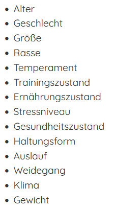 Jedes Pferd individuell beschrieben und versorgt, auch mit dem eigenen untersuchten Futter.