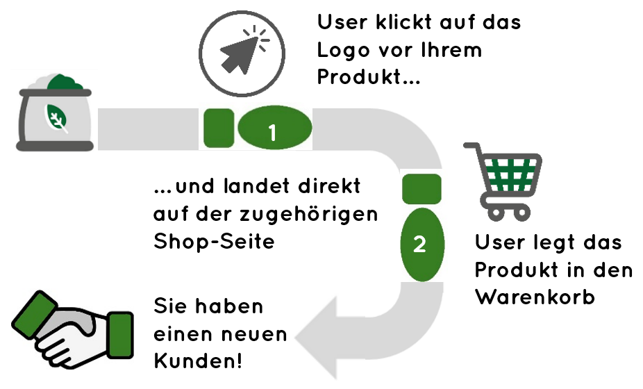 Sie haben kei­nen eige­nen Onlineshop, son­dern ver­kau­fen über exter­ne Shop-Anbieter? Dann macht die Verlinkung erst Recht Sinn; denn der Weg des poten­ti­el­len Kunden zu Ihnen ist lang…