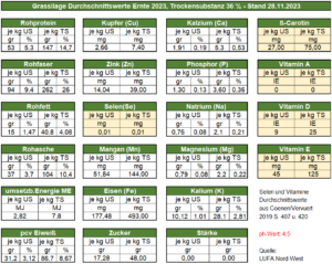 Stand 28.11.2023 stehen die neuen Werte Grassilage zur Verfügung
