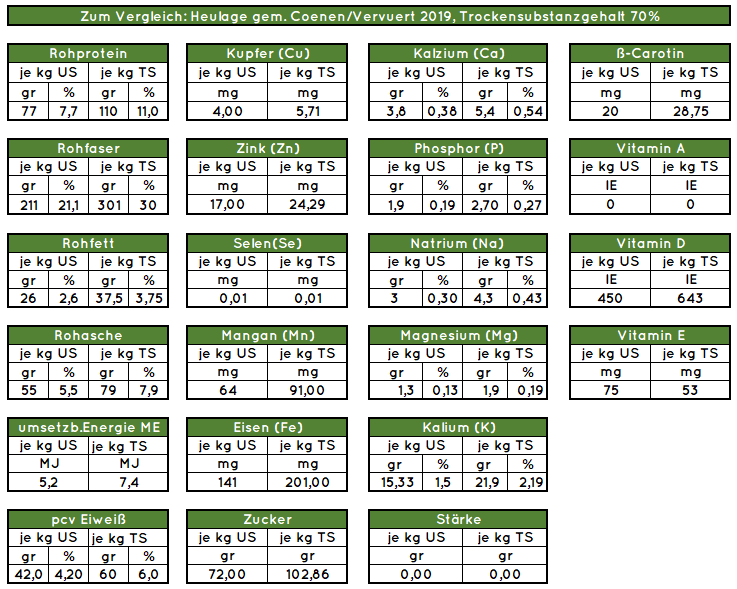 Selen und Vitamine wurden nicht untersucht, hier sind Werte aus Coenen/Vervuert 2019 hinterlegt. Diese sind aus der 6. Auflage von 2019
