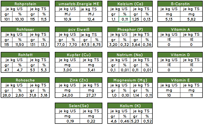 Durchschnittswerte Hafer