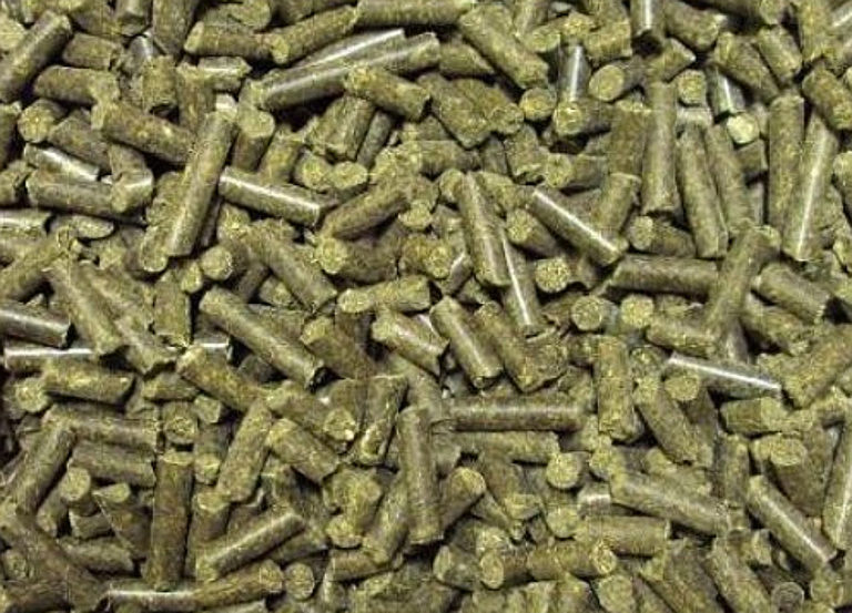 Grünmehlpellets bestehen aus getrocknetem, fein gemahlenem Grünfutter (Grünmehl), welches anschließend