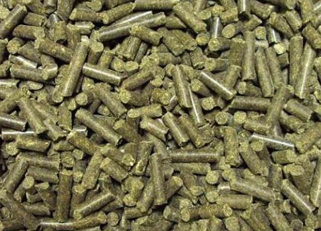 Grünmehlpellets bestehen aus getrock­ne­tem, fein gemah­le­nem Grünfutter (Grünmehl), wel­ches anschlie­ßend gepresst wird. Durch die Trocknung ent­ste­hen gegen­über dem Ausgangsmaterial kaum Verluste, der Anteil an ß-Carotin und Vitamin E ist hoch, der Anteil an Vitamin D jedoch nied­ri­ger als in son­nen­ge­trock­ne­tem Heu.